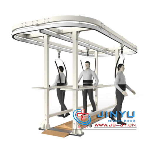 用途:本系统是一种建立在大脑功能重组和神经可塑性基础上新的康复训练方法,利用天轨系统将患者身体部分悬吊,减轻患者步行时下肢的负重,使患者的步行能力提高,并配合平行杠进行训练,让一些不具备独立步行条件的患者较早地进行步行训练,刺激了患者的脊髓步行发生器和大脑的步行中枢,激活受累大脑半球感觉和运动区。